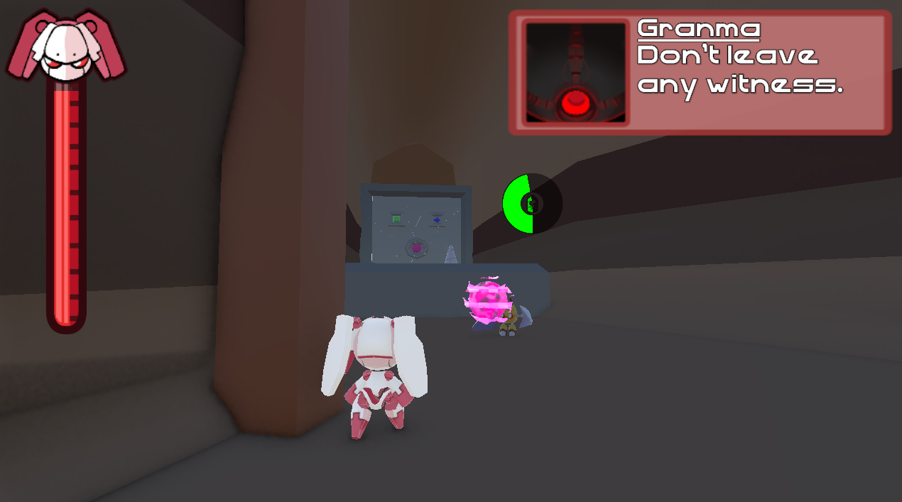 R.3.D es un Bullet Hell en 3D, donde encarnamos a una pequeña unidad de recolección, que solo busca llevar materiales de regreso a su creadora, la gran abuela.